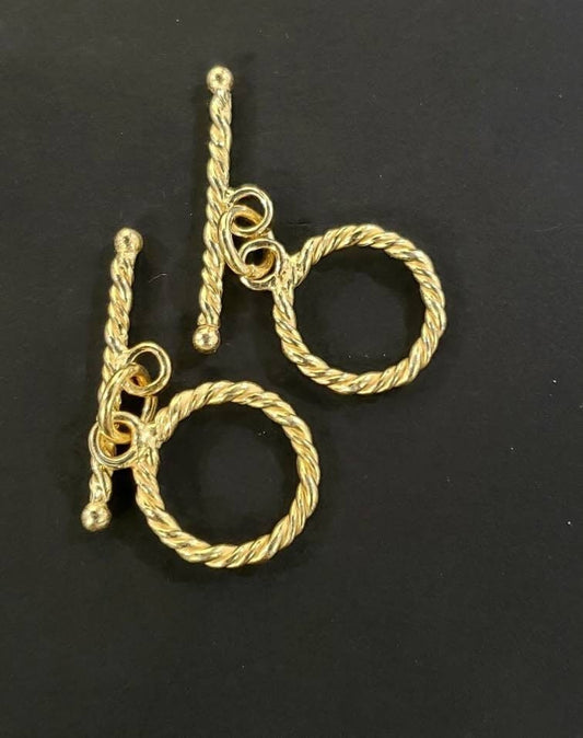 22K Gold Vermeil 925 Sterling Silber Bali Twisted Rope Knebelverschluss, 14mm Kreis, Vintage handgemachter Verschluss, 1 Set oder Bulk
