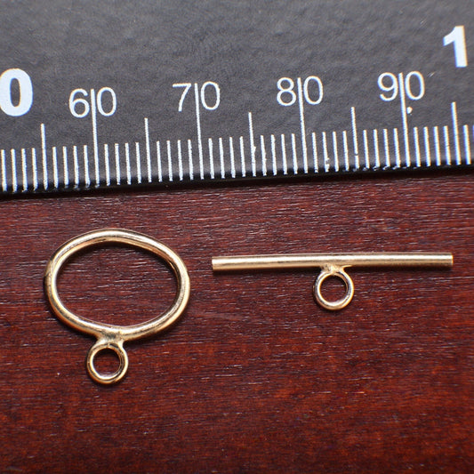 Glatter ovaler Knebelverschluss mit 14 Karat Goldfüllung, 14 mm, hergestellt in den USA, Verschluss zur Schmuckherstellung für Halsketten und Armbänder. 1 Set