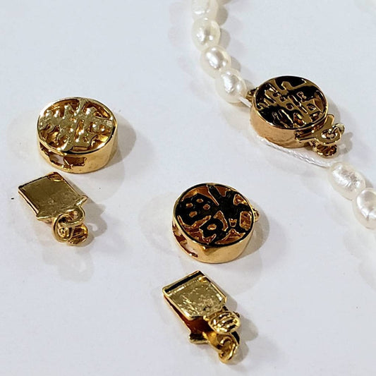 18 Karat Gold Vermeil 925 Sterling Silber Chinesisches Glücks- und langes Leben doppelseitig 9, 12 mm Kreis Steckverschluss, Perlenverschluss, 1 Stück