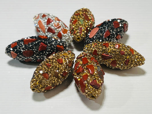 Roter Jaspis-Strass-Pflasterkristall in Schwarz, Gold- und Silberperle, mittig gebohrt, 15 x 33 mm glitzernde Perle, Bling-Spacer, Fokalperle