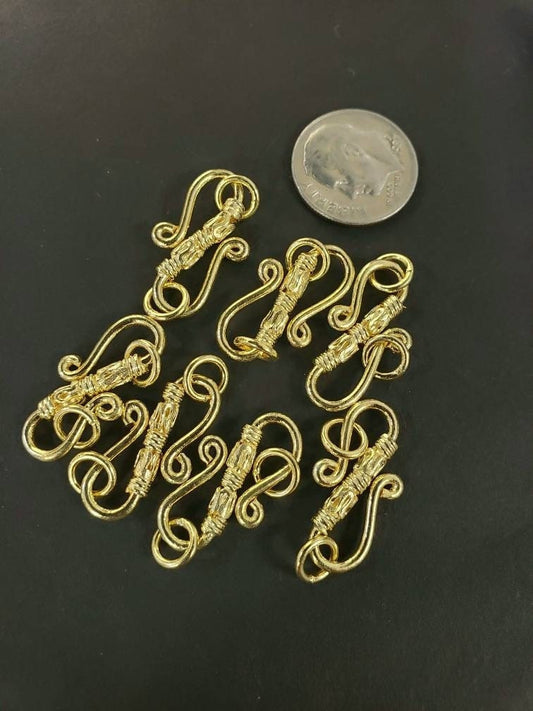 22 Karat Gold Vermeil, 925 Sterling Silber 22 mm langer S-Hakenverschluss mit 2 massiven Ringen, handgemachter Vintage-Hakenverschluss zur Schmuckherstellung, 1 Stück oder lose