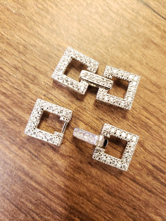 Zirkonia CZ Diamant Micro Pave Sterling Silber Rhodium Quadratischer Fancy Enhancer Verschluss, High End Schmuckherstellung Verschluss, 17x32mm