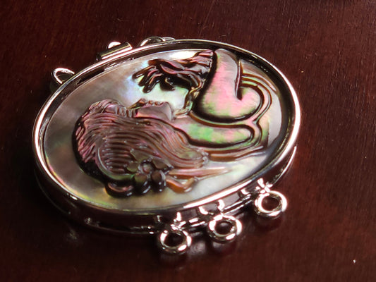 Schwarze Lippe Perlmutt 3 Schleife große Cameo Fancy Verschluss, 24×32 mm Vintage handgeschnitzt Schmuck machen Rhodium Verschluss