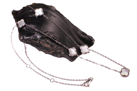 925 Sterling Silber Weiß Perlmutt Kleeblatt Charm 8,5mm lange Halskette, Glücksbringer 5Stk Kleeblatt Verstellbar 16",17",18" MOP Halskette