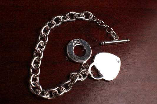 925 Sterling Silber gefüllter Herzanhänger, baumelndes ovales Gliederarmband mit Knebelverschluss, 7,5 Zoll, Valentinstag, Geschenk für die Freundin, 26 Gramm schwer