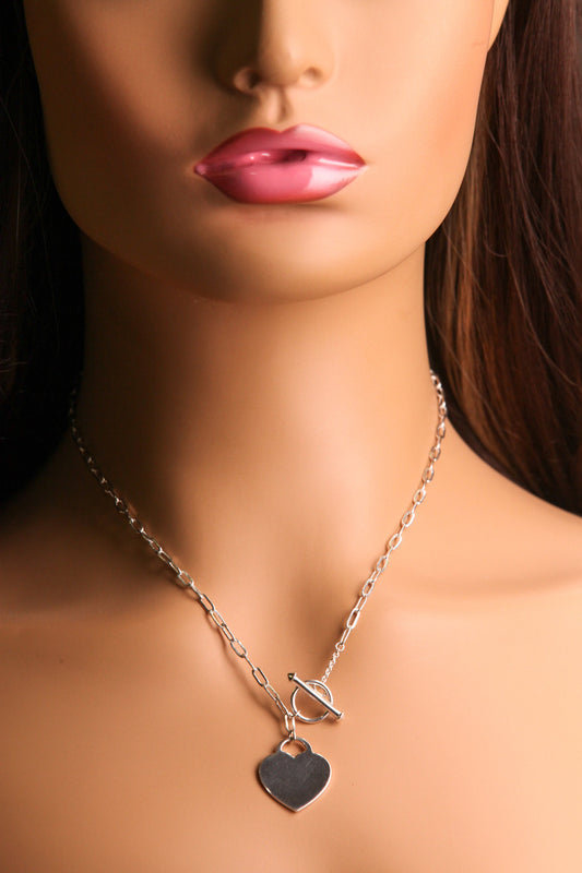 Massives 925 Sterling Silber Herz 20x23mm Büroklammerkette lang Charm Toggle Halskette 18" Valentinstag, Geschenk für die Freundin, Vintage, 8 Gramm Gewicht