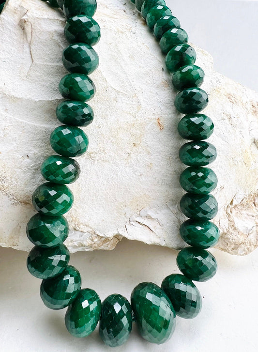 Echter sambischer Smaragd, dunkelgrün, 7–16 mm, großer facettierter runder Edelstein, 16 Zoll Halskette mit 9 Zoll verstellbarem Faden, Geburtsstein für Mai, Geschenk, 471 ct
