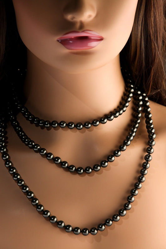 64" handgeknüpfte schwarze Südseemuschelperle, 8 mm, runde Perlen, Statement-Halskette in Schwarz, lang, zwei- oder dreilagig, 174 Stück
