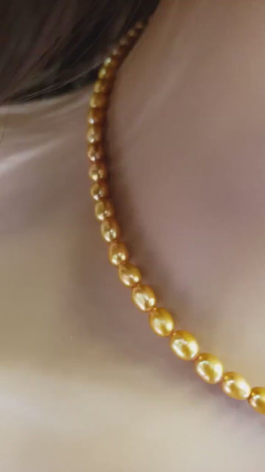 Natürliche Süßwasserperle goldgelb 4x6 Reis oval AAA Hochglanz Perlenkette, Choker, Layering, Minimalistische Naturperle Urlaubsgeschenk