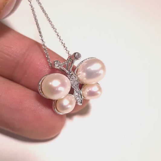 925 Sterling Silber CZ Diamant Südsee Muschel Perle Schmetterling Anhänger mit Sterling Silber Rhodium Kette Halskette Geschenk, 925 gestempelt