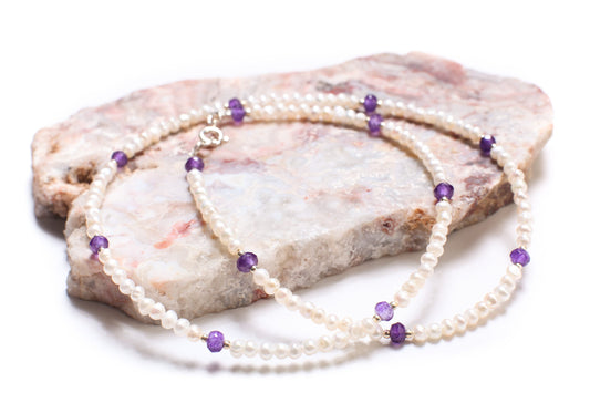 Süßwasser-Saatperle 3–3,5 mm, Halskette aus 925er Sterlingsilber, Auswahl nur mit Perle oder mit echtem Amethyst-Abstandshalter, Weihnachtsgeschenk