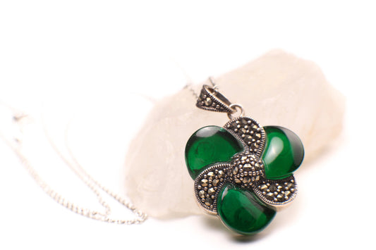 Markasit 925 Sterling Silber 25mm Grün Onyx Herz Anhänger Halskette mit Rhodium Nicht Anlaufend Sterling Silber Kabel Kette Vintage Antik