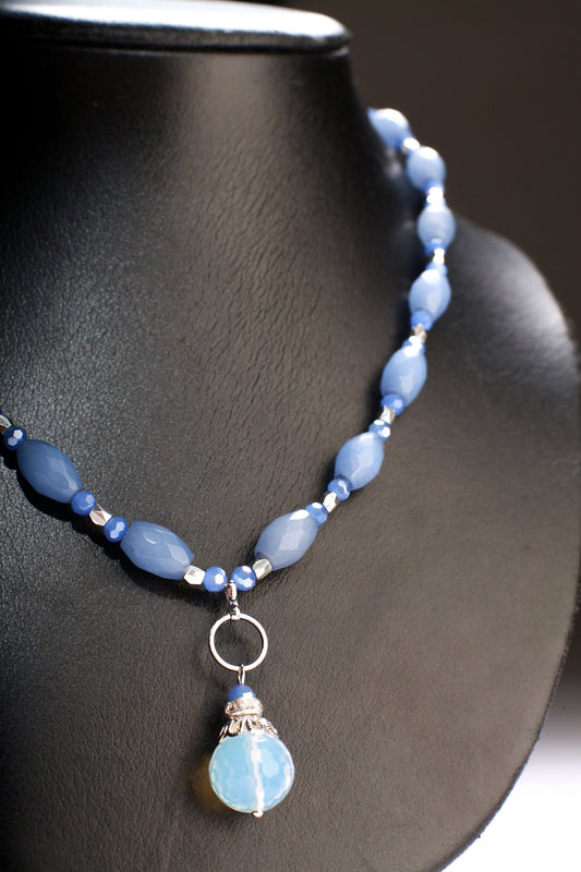 Blauer Quarz, facettiert, oval, mit atemberaubendem Opalit-Anhänger, 18 Zoll große Edelstein-Halskette