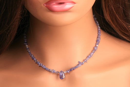 Natürliche Tansanit-Rohchips mit Tansanit-Tropfen-Charm-Halskette