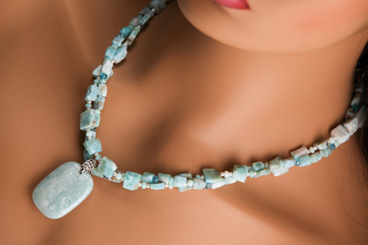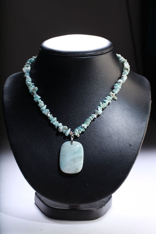 Halskette aus Larimar-Nugget-Chips mit passendem Larimar-Anhänger, 18-Zoll-Edelstein-Halskette mit 3-Zoll-Verlängerungskette