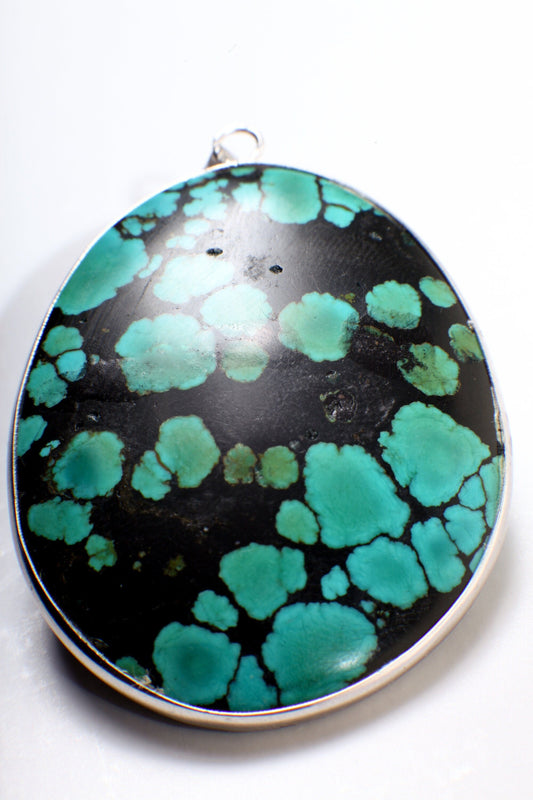 Türkis-Anhänger, echter AAA-tibetischer Spinnennetz-Türkis-Cab-Edelstein, 925er Sterling-Silber-Anhänger, Option: Silberkette, 39 x 50 mm, 20 g