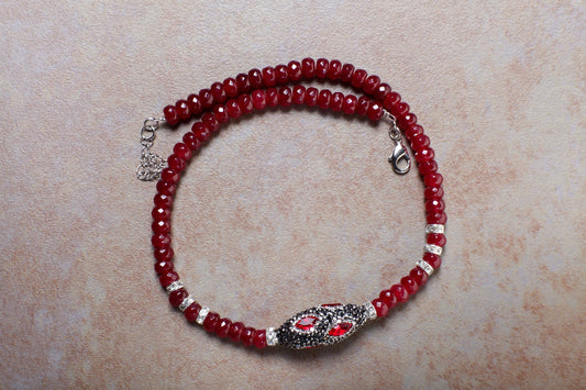 Facettiertes Rubin-Jade-Rundstück mit ovalem Strass-Kristall-Anhänger, 45,5 cm lange Halskette mit 5,1 cm langer Verlängerungskette