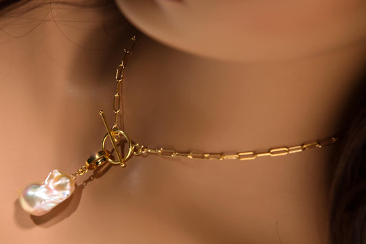 14 Karat Gold gefüllte 3 x 8 mm Büroklammerkette, Süßwasser 15 x 25 mm Flammenkugel Barock Pfirsich Perle austauschbare Anhänger Halskette