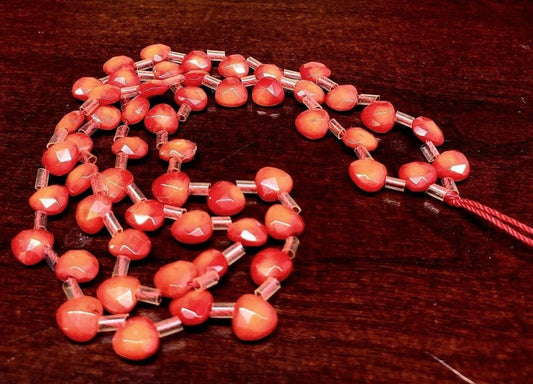 Echte Bambuskoralle, facettierte Herz-Broilet-Tropfen, AAA-Qualität, seltene Form, Edelsteinperlen zur Schmuckherstellung, 16-Zoll-Strang, 54 Stück