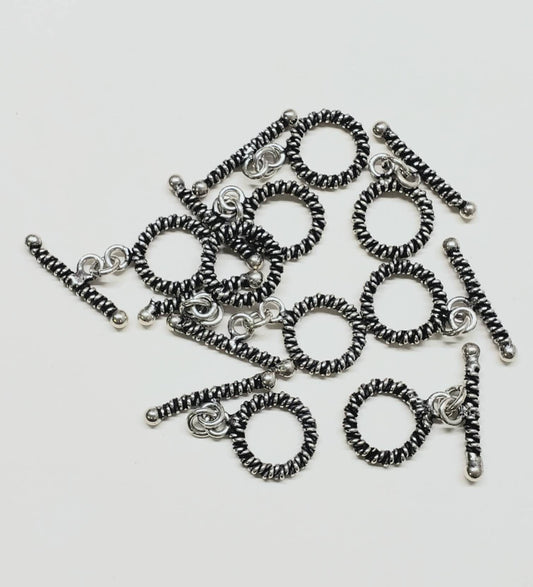 2 Sets 925 Sterling Silber Bali 10,5 mm runder Seilknebelverschluss. Handgefertigter Bali-Knebel im Vintage-Stil mit antiker Oberfläche für die Schmuckherstellung.