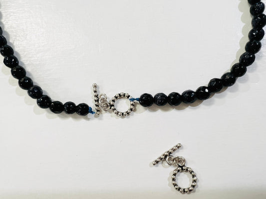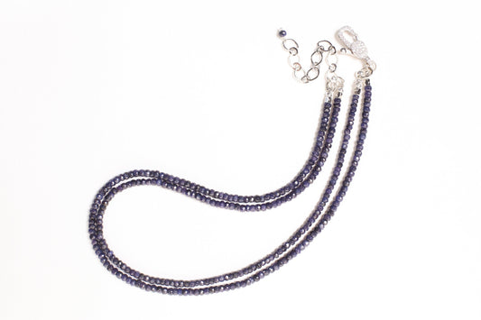 2-reihige, facettierte Saphir-Edelstein-Rundkette, 4 mm, verstellbarer rhodinierter CZ-Karabinerverschluss, 16" - 17" plus 3" bis 20"