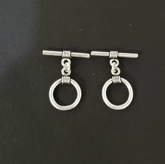 2 Sets 925 Sterling Silber Bali 14mm Knebelverschluss, Vintage Handgemachter Knebelverschluss zur Schmuckherstellung