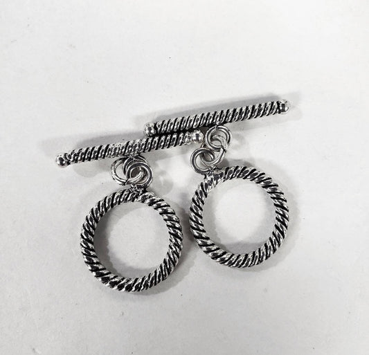 2 Sets 925 Sterling Silber Bali 15mm Seil Knebelverschluss, Vintage Handgemachter Knebelverschluss