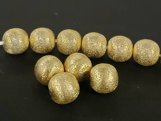 22 Karat Gold Vermei l 925 Sterlingsilber, gebürstetes Gold, 12 mm, handgefertigte Vintage-Bali-Perle für Armband, Halskette, Ohrringe, Abstandshalter. 1 Stück