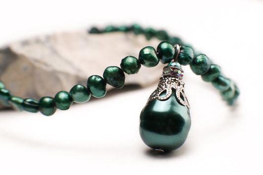 Grüne Süßwasserperlenkette mit Perlmutt-Muschelperlen-Anhänger in Tropfenform, mit 5,1 cm Verlängerung