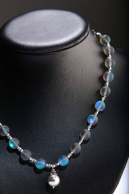 Mattes Seeglas, Meerjungfrau-Leuchtperle, rund 10 mm, mit Südseeperlen-Anhänger, 14 mm, 18-Zoll-Halskette mit optionaler 3-Zoll-Verlängerung