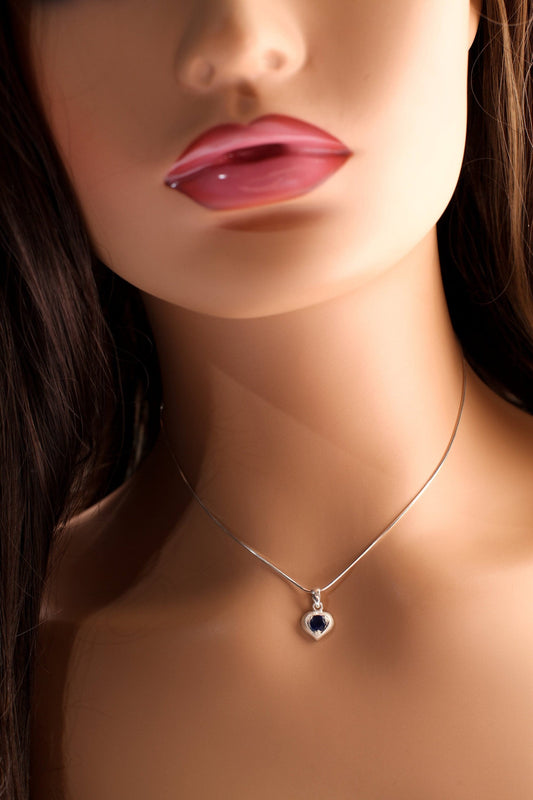 Saphirstein 10 mm Herzanhänger matt mit 925 Sterling Silber italienischer Halskette in 16,18 Zoll. 925 gestempelt