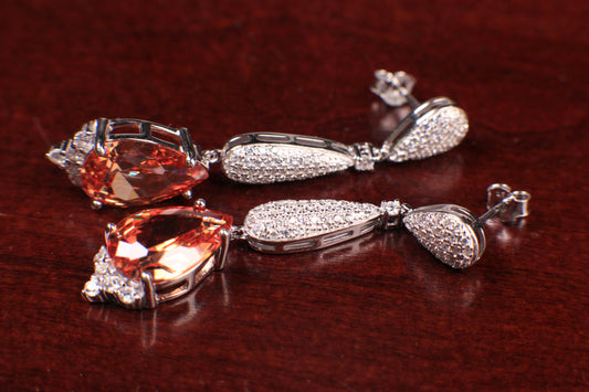 Echter oranger Imperialtopas, lange Tropfenform, 10 x 14 mm, mit 925er Sterlingsilber-Zirkonia-Ohrstecker, Brautschmuck, Boho, Valentinstagsgeschenk