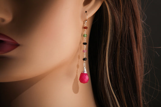Watermelon Tourmaline Wire Wrapped Dangling Fuchsia Hot Pink Quartz in 925 Sterling Silver Earwire, Handmade Gift For Her