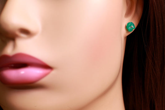 Vintage Marcasite 925 Sterling Silver Green Onyx 8mm stud HandCrafted Flower earrings. 925 stamped, Vintage antique gift