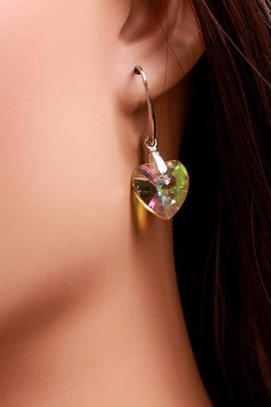 Swarovski Kristall Gelb AB Regenbogen 14mm Herz Ohrringe,Valentinstag Geschenk schönes gelbes Herz für Sie