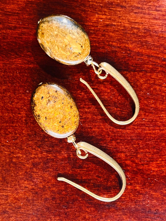 Natürlicher Bronzit, oval, 12 x 16 mm, Antik-Bronze-Ohrring. Geschenk im Vintage-Stil