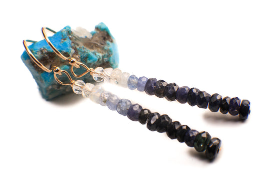 Ombre Saphir Facettierte 3mm Roundel Bar Ohrringe 14K Gold Filled und 925 Sterling Silber Haken Ohrhaken oder Lever Back Ohrringe, Elegantes Geschenk
