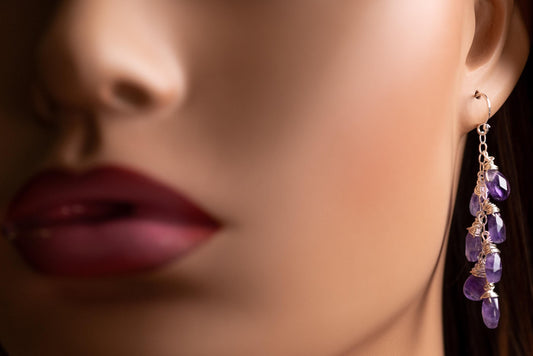 Natürliche brasilianische Amethyst Kaskaden Tropfen Ohrringe, 925 Sterling Silber, 7x9mm Draht gewickelt Tropfen Baumeln Ohrhaken, Minimalistisch, Geschenk für Sie