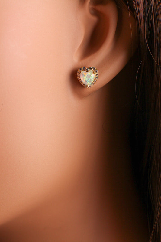 Äthiopischer Feueropal, Welo-Opal, 8,5 mm Herzform Ohrstecker in Gold Vermeil, 925 Sterling Silber AAA Feuriger Opal Elegante zierliche Ohrringe