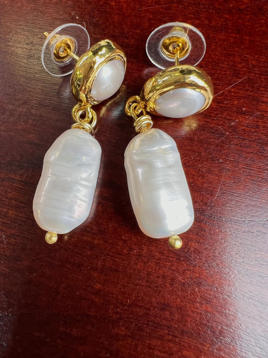 Natürliche Süßwasser-Biwa-Perlen-Ohrstecker mit Süßwasserperlen-Goldfassung.