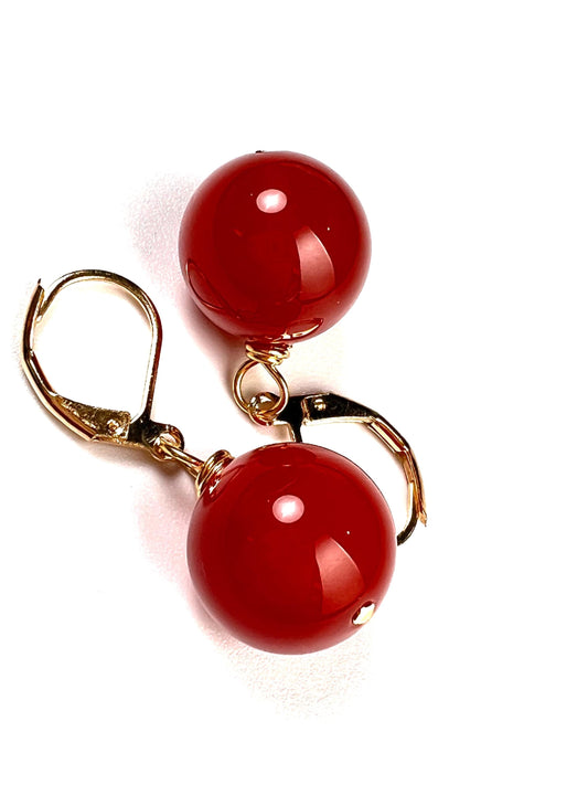 Natürlicher Karneol Rot 14mm großer glatter runder Gold Leverback Ohrring, minimalistisches schlichtes handgemachtes Geschenk