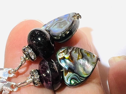 Echte Abalone 12mm Herzform doppelseitig mit Granat glatt 12mm und Strass Spacer 925 Sterling Silber Ohrringe Handgefertigtes Geschenk für Sie