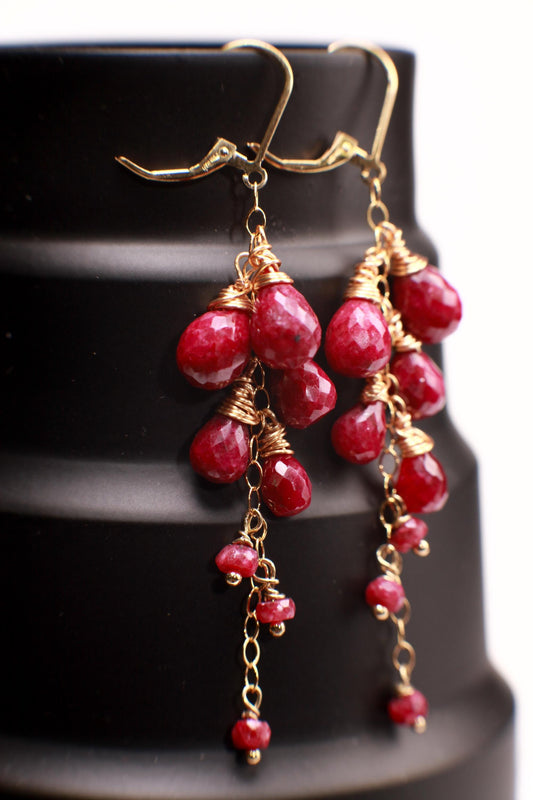 Echte facettierte 5x7-7x9mm Briolette-Kaskaden-Ohrringe mit Leverback-Funktion aus 14 Karat Gold, handgefertigtes wertvolles Geschenk zum Valentinstag, für Brautjungfern und Geburtstage.