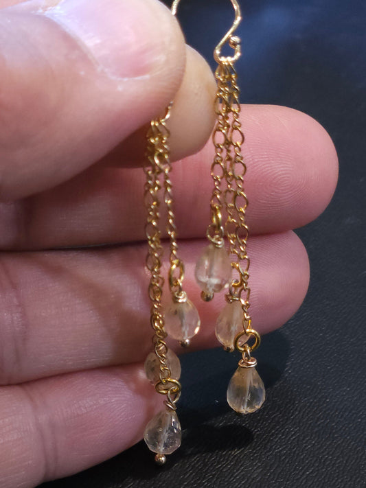 Echter Citrin, facettiert, 3 baumelnde Tropfen, drahtumwickelt, 5 x 7 mm, 14 K Gold gefüllte Kette und Hakenohrringe