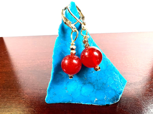 Natürlicher Karneol Rot 10mm glatt rund goldfarbener Leverback-Ohrring, handgemachtes Geschenk