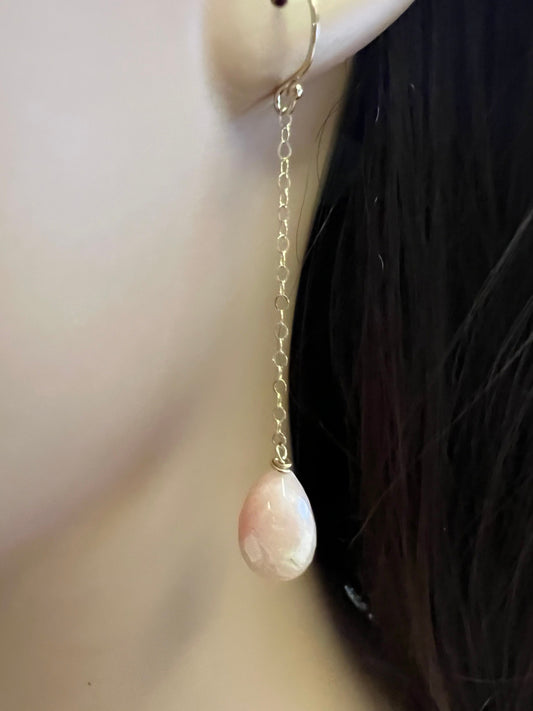 Rosa Opal, baumelnde Briolette-Tropfen, 8 x 12 mm, mit 14 Karat Gold gefüllter oder 925er Sterling-Silberkette und Ohrhaken, beruhigender Edelstein