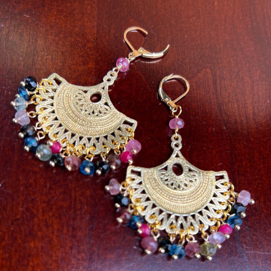 Wassermelonen Multi Turmalin Facettierte Roundel handgemachte drahtgewickelte 18k Brush Gold Vermeil Ohrringe, Braut, Boho, handgemachtes Geschenk