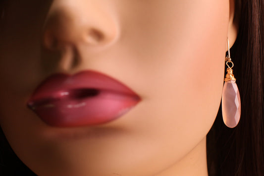 Rosa Chalcedon facettiert 10 x 30 mm langer Tropfen 14 Karat Gold gefüllt Leverback Ohrring. Handgemachter Babyrosa Ohrring Geschenk