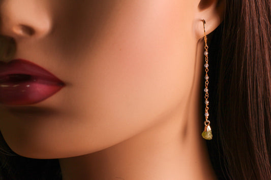 Roher Peridot 8 mm baumelnd mit Labradorit facettierter Draht umwickelter Kette, Lange Ohrringe, 22 Karat Gold Vermeil Geschenke Rohheilkristall