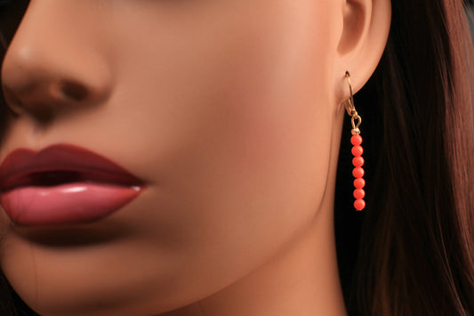 Echte lachsrosa Koralle 4mm runde Perlen handgefertigte Goldbarren-Ohrringe